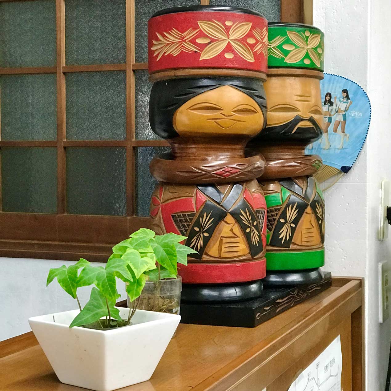 左前に目立つ大きな置物は、お客さんから海外旅行のお土産にもらったそうです。