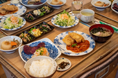 地元産の食材をふんだんに使った定食は品数も多くボリュームもあります。