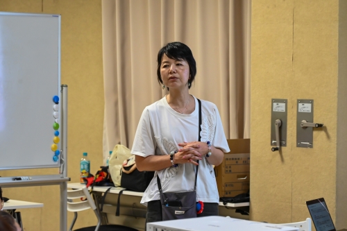 スライドを使った講義では、360度カメラの仕組みや基本操作を学習しました 。